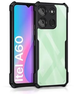 ?CAMERA and SCREEN PROTECTION – Raised bezels lift camera and screen off flat surfaces, protecting from scratches and scuff marks. Ultra slim, Flexible, light weight Anti Smudge, Designed Exclusively For Itel A60 – Hybrid AirEDGE technology fusing Superior Quality TPU Material and a durable Clear Transparent back panel, PRECISE BUTTONS AND CUTOUTS – Pronounced buttons are easy to feel and press, while large cutouts for the charging port fits most cables. Supports bilateral wireless charging., SHOCK PROOF PROTECTION – Highly Protective Rugged Armor for Complete Protection of Mobile Frame and Screen from scratches, falls, and shocks., FULL COMPATIBILITY – This Armour Back Case is designed and tested to be compatible with most screen protectors. Compatible with Itel A60 case cover