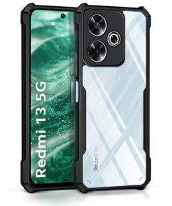?CAMERA and SCREEN PROTECTION – Raised bezels lift camera and screen off flat surfaces, protecting from scratches and scuff marks. Ultra slim, Flexible, light weight Anti Smudge, PRECISE BUTTONS AND CUTOUTS – Pronounced buttons are easy to feel and press, while large cutouts for the charging port fits most cables. Supports bilateral wireless charging., SHOCK PROOF PROTECTION – Highly Protective Rugged Armor for Complete Protection of Mobile Frame and Screen from scratches, falls, and shocks., Designed Exclusively For Redmi 13 5G | Poco M6 Plus 5G – Hybrid AirEDGE technology fusing Superior Quality TPU Material and a durable Clear Transparent back panel, FULL COMPATIBILITY – This Armour Back Case is designed and tested to be compatible with most screen protectors. Compatible with Redmi 13 5G | Poco M6 Plus 5G case cover