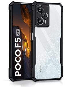 ?FULL COMPATIBILITY – This Armour Back Case is designed and tested to be compatible with most screen protectors. Compatible with Poco F5 5G case cover, CAMERA and SCREEN PROTECTION – Raised bezels lift camera and screen off flat surfaces, protecting from scratches and scuff marks. Ultra slim, Flexible, light weight Anti Smudge, PRECISE BUTTONS AND CUTOUTS – Pronounced buttons are easy to feel and press, while large cutouts for the charging port fits most cables. Supports bilateral wireless charging., SHOCK PROOF PROTECTION – Highly Protective Rugged Armor for Complete Protection of Mobile Frame and Screen from scratches, falls, and shocks., Designed Exclusively For Poco F5 5G – Hybrid AirEDGE technology fusing Superior Quality TPU Material and a durable Clear Transparent back panel