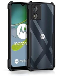 ?Designed Exclusively For Motorola Moto E13 – Hybrid AirEDGE technology fusing Superior Quality TPU Material and a durable Clear Transparent back panel, CAMERA and SCREEN PROTECTION – Raised bezels lift camera and screen off flat surfaces, protecting from scratches and scuff marks. Ultra slim, Flexible, light weight Anti Smudge, PRECISE BUTTONS AND CUTOUTS – Pronounced buttons are easy to feel and press, while large cutouts for the charging port fits most cables. Supports bilateral wireless charging., SHOCK PROOF PROTECTION – Highly Protective Rugged Armor for Complete Protection of Mobile Frame and Screen from scratches, falls, and shocks., FULL COMPATIBILITY – This Armour Back Case is designed and tested to be compatible with most screen protectors. Compatible with Motorola Moto E13 case cover